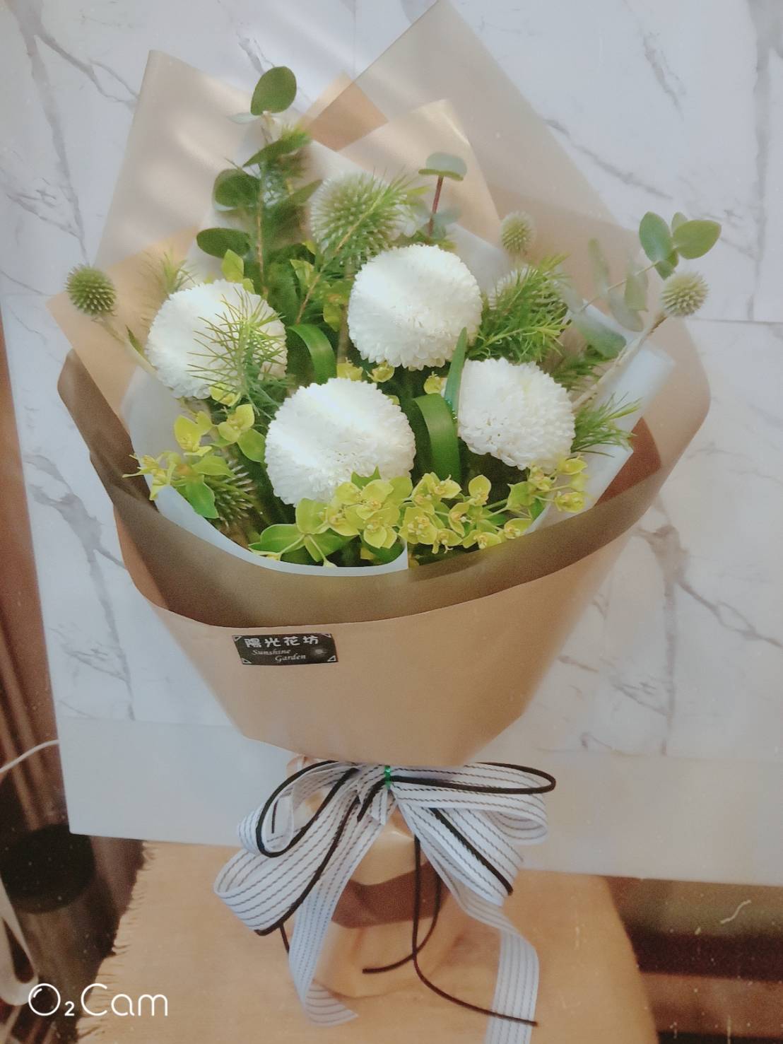 白玫瑰乒乓菊花束 Floral Me網上花店